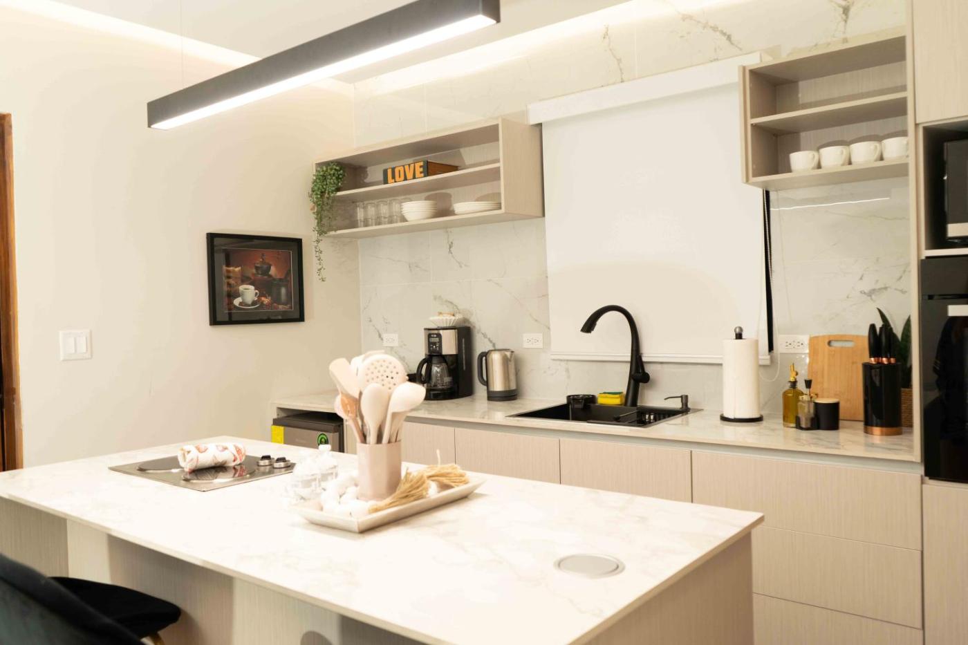 One-Bedroom Apartment. This apartments standout feature is the hot tub. Boasting a private entrance, this air-conditioned apartment includes a kitchen, 1 bedroom and 1 bathroom with a bath and a shower. In the well-equipped kitchen, guests will find a stovetop, a refrigerator, kitchenware and an oven. Featuring a terrace with garden views, this apartment also offers a tea and coffee maker and a flat-screen TV. The unit has 1 bed.