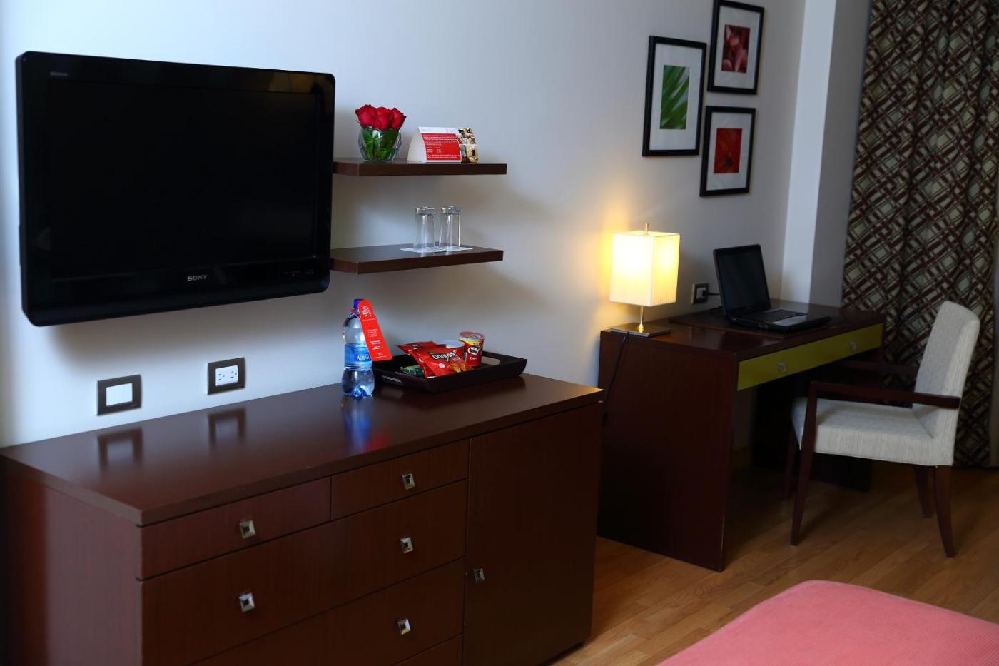 Master Suite. This extra-large, air-conditioned suite has a seating area with a sofa, an executive writing desk and an armchair. It features free Wi-Fi and a separate lounge with a 37-inch LCD cable TV, an entertainment center with a Home Theatre System and a minibar. The private bathroom comes with a hairdryer, a spa bath and a 26-inch LCD TV. Located on the top floor, this suite has amazing city views. The bedroom is equipped with 1 king-sized bed, plus fine linens. ;