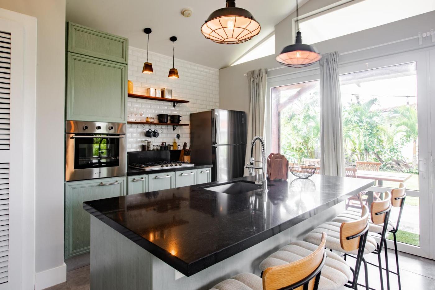 Three-Bedroom Villa. This villas special feature is the infinity pool. Featuring a private entrance, this air-conditioned villa comprises 1 living room, 3 separate bedrooms and 3 bathrooms with a shower and a bidet. Guests will find a stovetop, a refrigerator, a dishwasher and kitchenware in the fully equipped kitchen. The villa also provides guests with a barbecue. Boasting a terrace with garden views, this villa also provides a washing machine and a flat-screen TV with streaming services. The unit offers 4 beds.