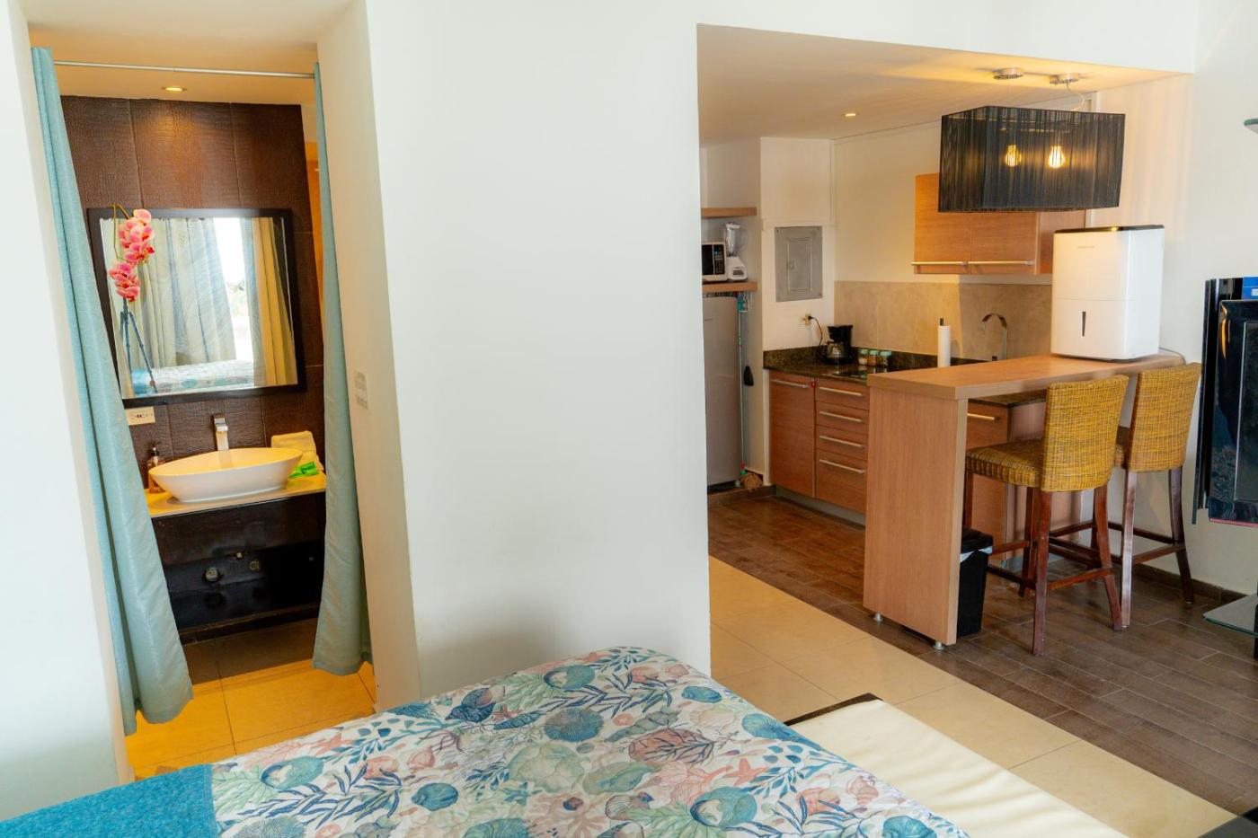 Boasting air-conditioned accommodation with a private pool, garden view and a terrace, Hermoso estudio con vista al mar en el Town Center de Playa Blanca Panamá is situated in Río Hato.500 metres from Farallon Beach, the property offers a private beach area and free private parking. The accommodation provides a 24-hour front desk, a lift and organising tours for guests.